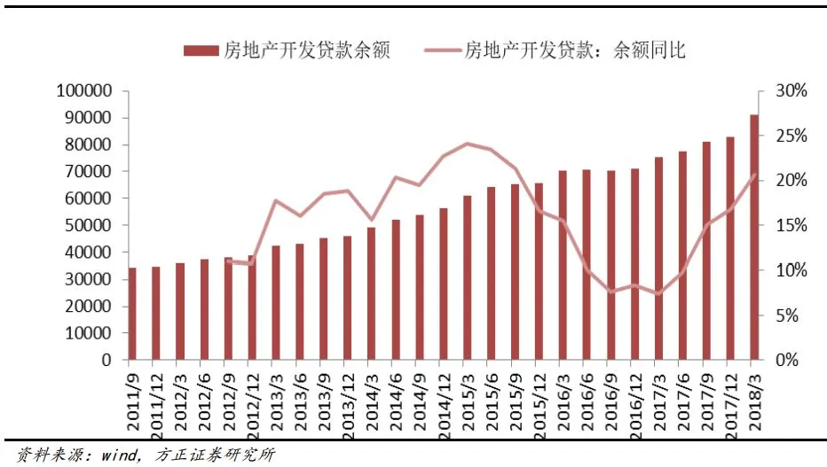 图:房地产开发贷款同比增速回升,2018年Q1为21%