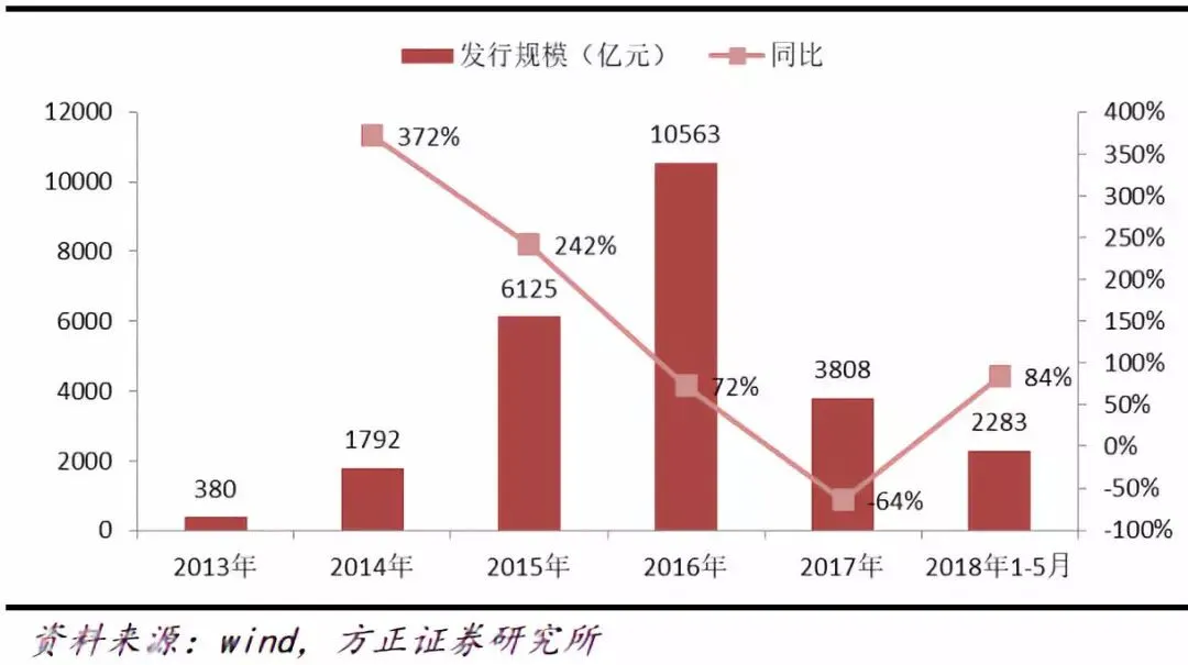 (1)公司债:2018年1-5月受非标收缩影响同比提升275%