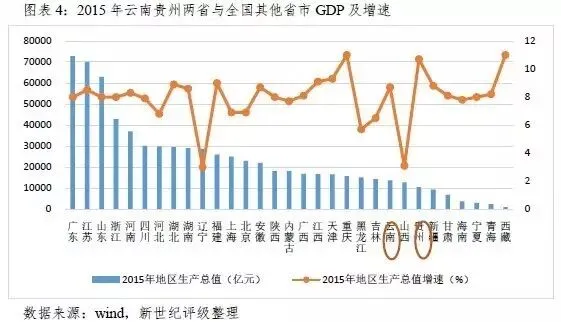 (一)云贵两省地区经济增速位于全国前列;云南省以烟草、旅游等为支柱产业,经济基础与发展水平均相比贵州较好;贵州省以白酒、矿产等为传统产业为支柱产业,新兴产业的发展为贵州的高速增长提供动力保障。