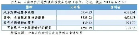 2014年1月24日,云南省和贵州省分别公告了《云南省政府性债务审计结果》和《贵州省政府性债务审计结果》,统计时间截至2013年6月,通过分析云南省和贵州省负有偿还责任债务的构成,可以看到: