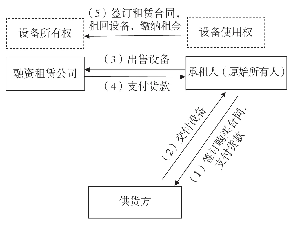 2. 售后回租是指承租人以其存量自有设备与出租人进行洽谈,将设备以合理的价格出售给出租人,再从出租人手中租回使用。具体流程如下: