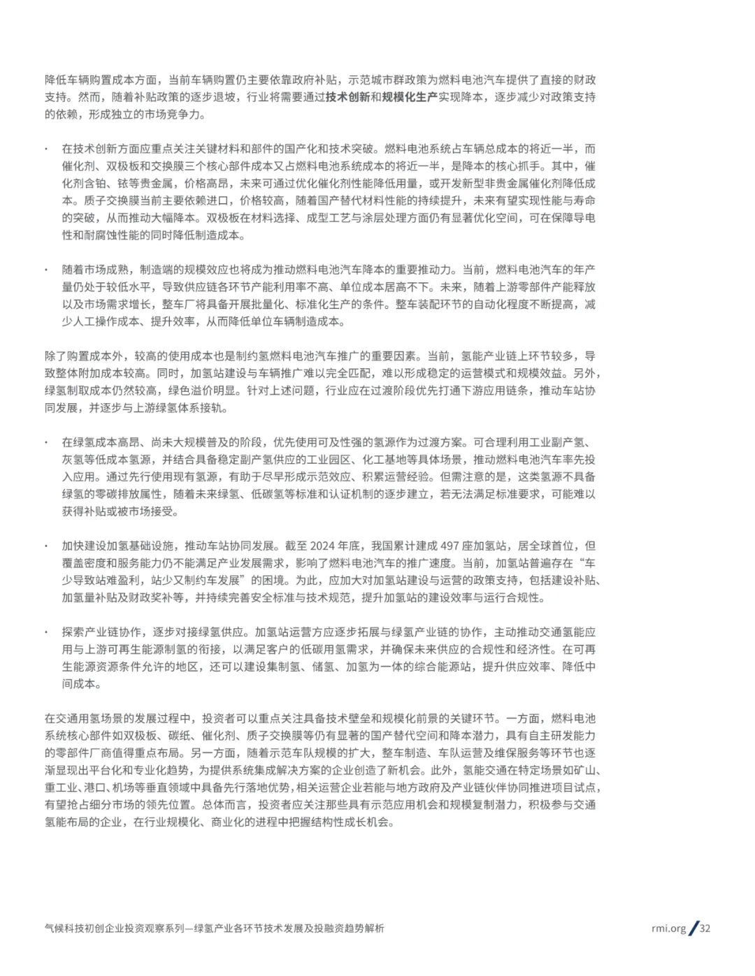 落基山研究所《绿氢产业各环节技术发展和投融资趋势分析报告》旨在全面梳理绿氢市场的发展现状、核心技术路径及投融资趋势,帮助投资者深入理解行业动态,降低投资门槛,力争实现资本对绿氢市场的技术突破和规模化发展的有效助力。本报告主要涵盖以下三个方面: