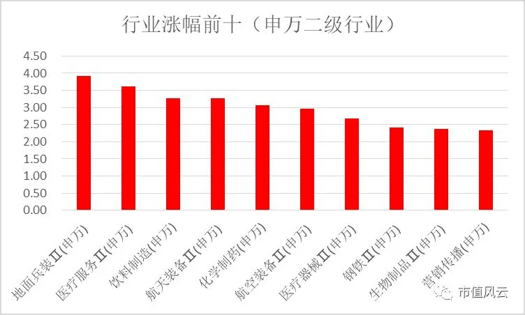 行业板块方面,白酒、医疗保健板块表现强势,指数涨幅均超过3%,领涨两市。医疗保健板块内合计25只个股涨幅超过3%,其中3只涨停,泰格医药股价创历史新高。
