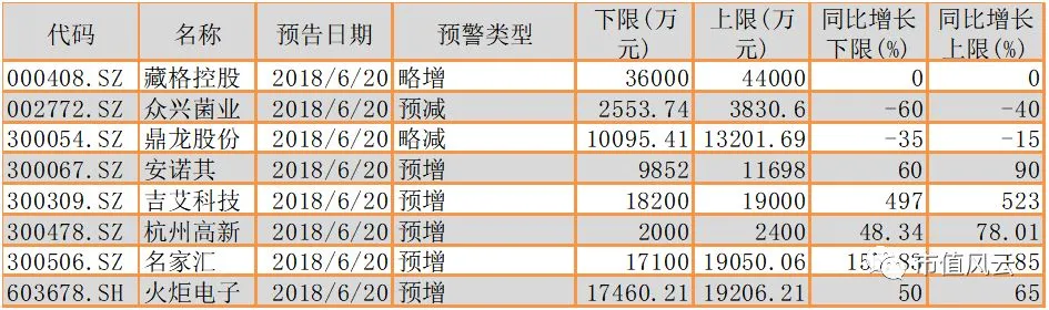 如果从细分的18年中报业绩预告类型来看,排名前三位的为略增(338家),预增(240家)和续盈(172家)。今天的涨停股中也出现了多只中报预期概念股,如猛狮科技、名家汇、中大力德等。