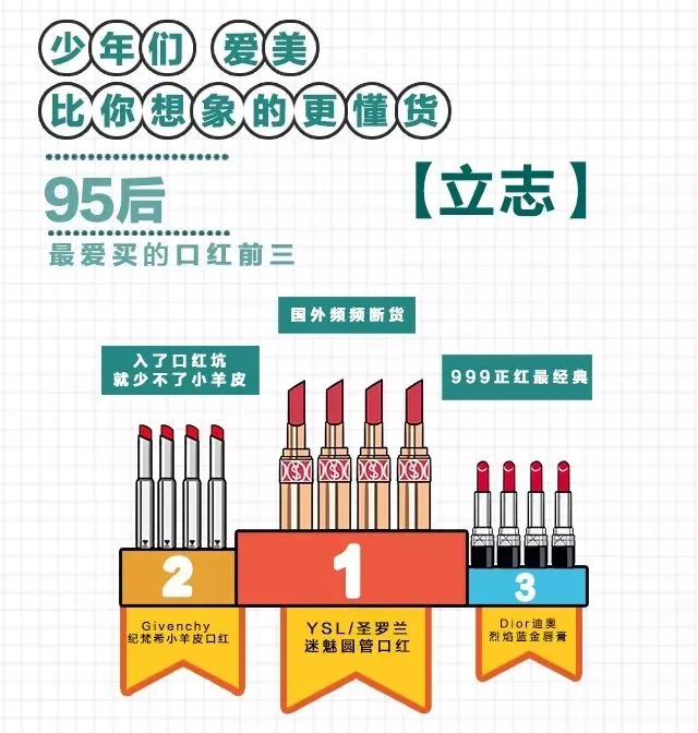 全球各地流行的商品以及由此衍生的消费文化热词,正在迅速演变成为中国95后消费者在天猫国际上的热搜关键词。这些年度热搜词也重新定义和记录了2017年进口消费色彩:珠光粉嫩、润颜嫩白、婴儿米色、热烈姨妈色、少女粉嫩色、叠翠鎏金色、名媛杏棕色等。YSL、Dior、Givenchy成为95后男性最受欢迎的国际彩妆品牌。