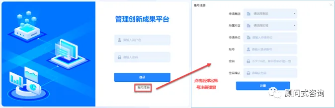 在登录页面,按照图2的方式,点击【账号注册】,打开注册账号信息填写页面。