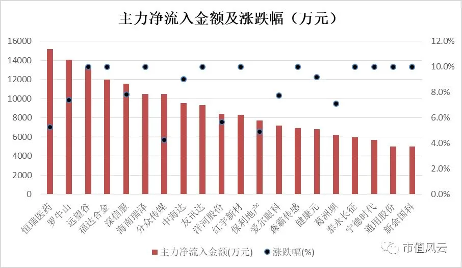 行业板块方面,白酒、医疗保健板块表现强势,指数涨幅均超过3%,领涨两市。医疗保健板块内合计25只个股涨幅超过3%,其中3只涨停,泰格医药股价创历史新高。
