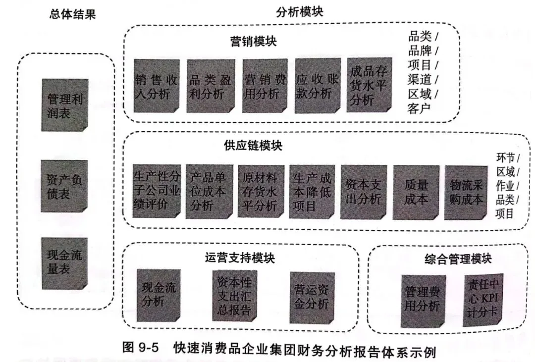 下图是一家快速消费品企业集团财务分析报告内容框架的示例。