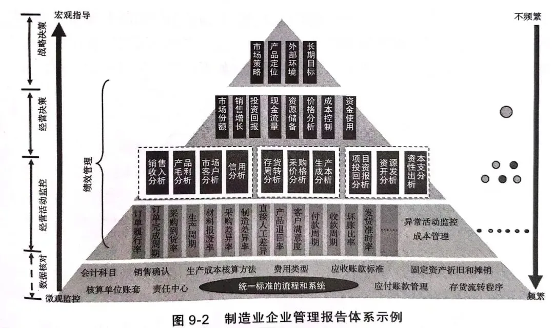需要注意的是,上述管理报告体系的先进实践要求管理报告的范围必须覆盖全公司,即每一个下属单位都必须纳入全公司管理报告编制上报的范围内,不论其是否有业务活动、是否产生收入或发生费用,就像基于法人架构产出合并财务报表一样。