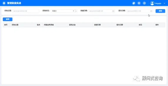 在管理复盘实战主界面,按主题选择项目,从最右端的操作列点击【新增版本】,进入管理复盘入门页面,将以框架方式展示初探阶段的工作结果。
