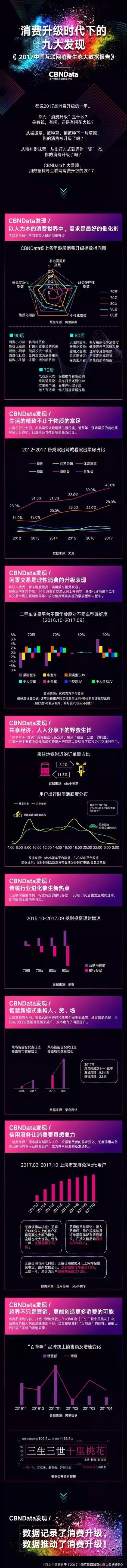 2017年12月20日,第一财经商业数据中心(CBNData)发布了《2017中国互联网消费生态大数据报告》,对过去一年大消费领域和互联网领域数据研究成果进行了汇总整理。