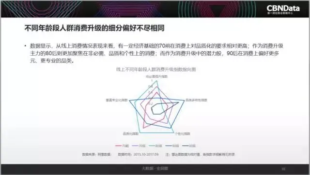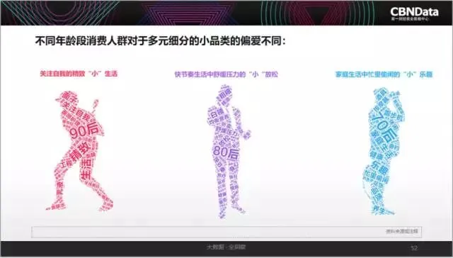 CBNData发现,在2016年出现追求品质化趋势的基础上,2017年消费者的品质化消费需求再次升级,愈发关注提升生活品质的小细节,使得垂直细分的小品类更受欢迎。在消费升级的方向上,不同年龄层消费者呈现出不同的偏好。