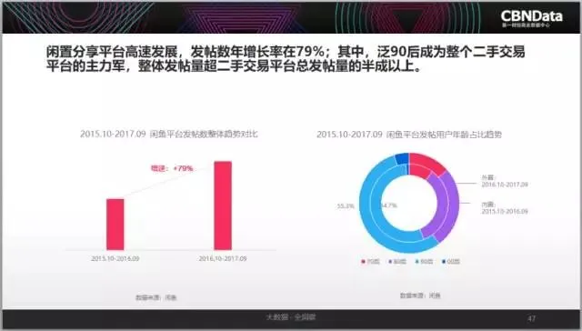 另一方面,消费者更理性看待消费需求,更愿意接受二手产品的买卖,也间接推动了闲置交易市场繁荣。CBNData《报告》显示,闲置分享平台呈高速增长,年增长率达79%,90后年轻群体是闲置物品交易主力军。3C数码、个护美妆和手机等小件闲置物品,通过二手交易平台有效发挥二次作用。