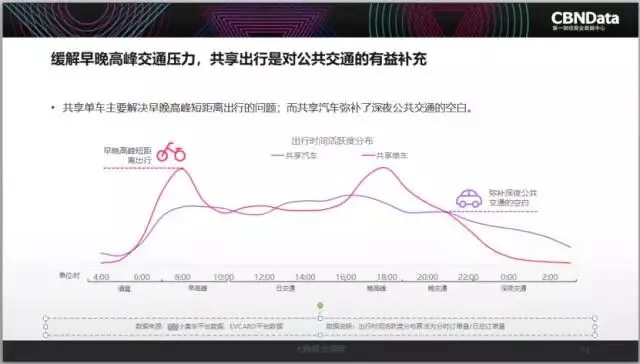 2017年,共享经济的崛起带来诸多服务和消费领域的更迭与升级。CBNData《报告》显示,共享出行正在颠覆革新交通出行方式:ofo小黄车等共享单车的出现,解决了早晚高峰短距离出行的难题。EVCARD分时租车等则弥补了深夜公共交通的空白。