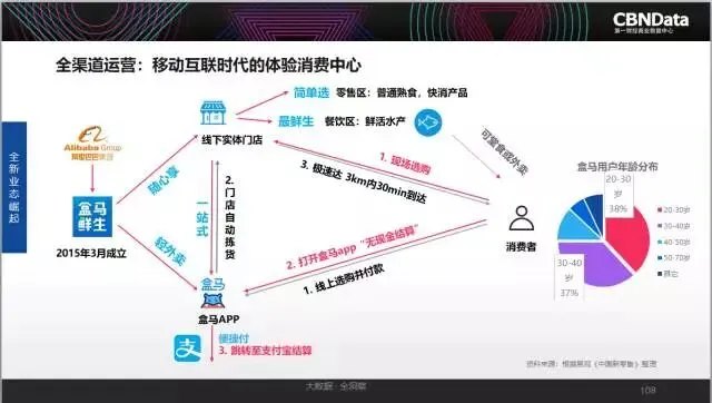 跨界零售新物种 “盒马”,通过商品再造、技术再造、流程再造和物流再造,把一般意义上的生鲜超市转变为移动互联时代的体验式消费中心。围绕“餐饮体验+生鲜超市零售+基于门店配送”,打造了新零售的样板间。通过算法驱动的智能物流,实现门店附近3公里范围内,30分钟送货上门。同时商品定位新鲜、健康、时尚、精致,围绕“大厨房”概念,基本以食品和日用百货为主,主打“盒马特色”的生鲜品种也一应俱全,满足用户一日三餐基本需求。