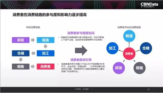 此外,根据CBNData《报告》对互联网能消费的展望:数据驱动+技术的助力,将进一步改造互联网消费生态,消费者在消费链路的参与度和影响力逐步提高,以消费者为核心的商业模式将爆发,各种渠道也将进一步充分融合,最终达到各种渠道随时打通,消费者实现在任何时间、任何地点、任何场合,即想即得。