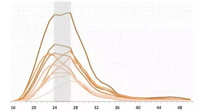 从消费年龄上看,影响力TOP10网红们吸引到的粉丝群体年龄基本吻合。集中分布在24岁到28岁之间。这一年龄阶段背后的粉丝群体实际上已经摆脱了职场菜鸟的阶段。换而言之,职业轻熟女更愿意为网红背后的店铺、商品买单。同时阿里数据还发现了几乎每一个TOP10网红粉丝中都有一小群40至48岁年龄段的消费者。在粉丝忠诚度上,70%网红的粉丝能实现3个月内重复购买。