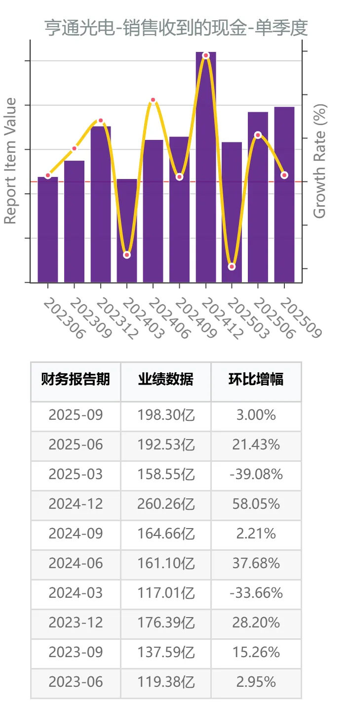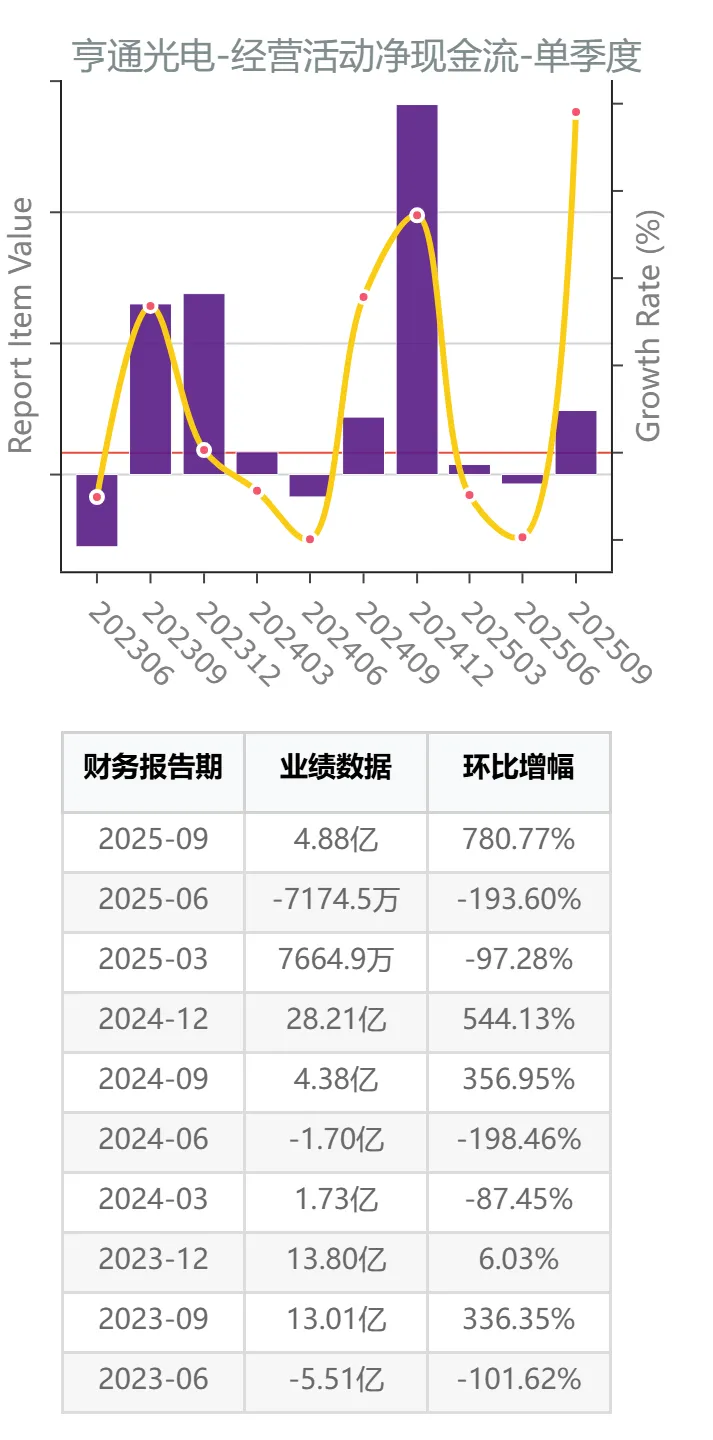数据显示,2025年以来,亨通光电公司虽然销售收现有所增长,但经营活动净现金流没有显著改善,反映公司同步加大了经营性支出。