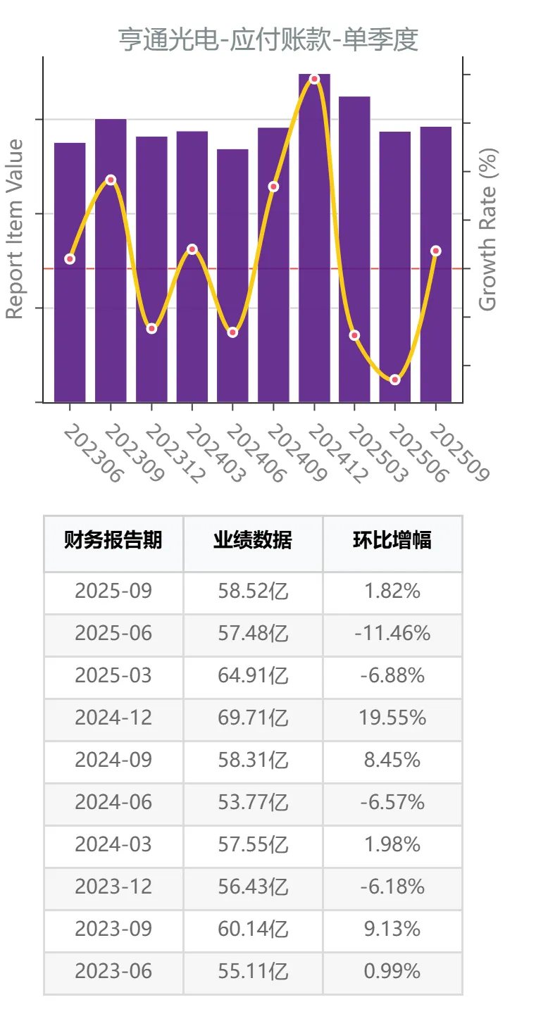 数据显示,2025年以来,亨通光电公司的应付账款水平基本保持稳定,说明公司收入的增长主要依靠经营性支出的支持,说明上游商品供应有一定的紧俏性。