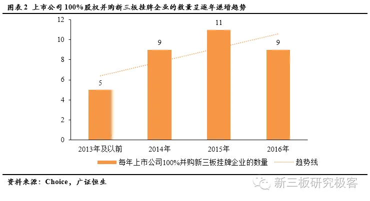 上市公司100%收购新三板企业数量呈上升趋势:竞合谋求共赢,有望助力业绩