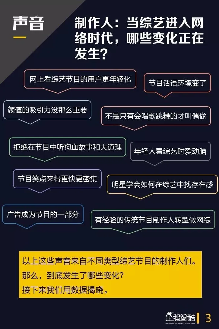 具体有哪些变化?通过对全国范围手机网民进行针对性调研,并结合来自视频网站的综艺节目用户画像数据,归纳出以下核心洞察: