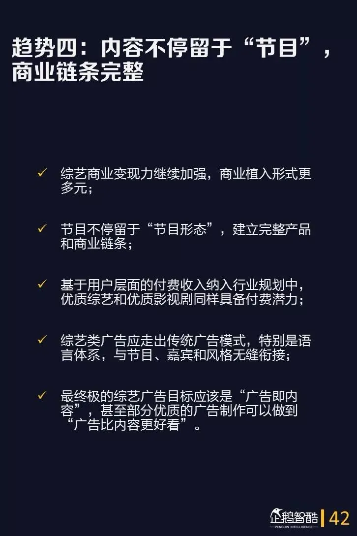 随着综艺节目对提升艺人影响力价值被认可,且用户在选择偶像层面标准更多元,综艺节目将以节目价值定位选择匹配艺人,跳出流量牢笼。