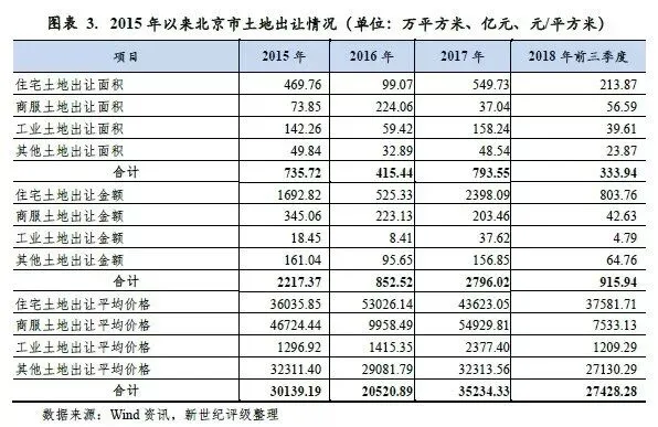 2017年以来北京市实行宽松的土地供应政策,土地供应明显增加,且致力于构建多层次住房供应体系,加大共有产权、租赁地块供应,住宅土地成交均价和溢价率均明显回落;同时北京市实行严限购的楼市政策,以保障房地产市场平稳健康运行,房地产市场逐渐回稳止涨。