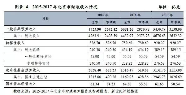 从国有资本经营收入来看,2015-2017年北京市国有资本经营收入分别为61.34亿元、64.80亿元和61.63亿元,主要为国企上缴利润和一般公共预算转入国有资本经营预算资金。随着国企改革的推进,该部分收入有所波动,但是国有资本经营收入占北京市财政收入的比例相对较小,影响有限。