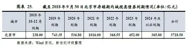 北京市城投债存续余额在全国处于上游水平,发行主体主要系市本级。分区域看,平谷区城投债偿付压力相对较大,其他区域2017年一般公共预算收入规模均能覆盖当年末城投债务余额。总体上北京市城投债到期时间分布相对均衡,即期偿付压力可控。