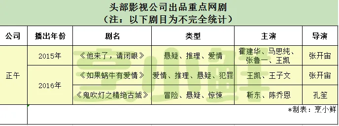 2015年《他来了,请闭眼》是正午阳光首部主动拥抱互联网的作品。彼时正值视频平台发展井喷期,随着付费会员模式的兴起,一批视频网站开始偏向自制剧。于是搜狐找到了正午阳光一块开发这部改编自丁墨同名推理小说的网剧,并创下国内剧集由互联网反向输出到一线卫视的先河。