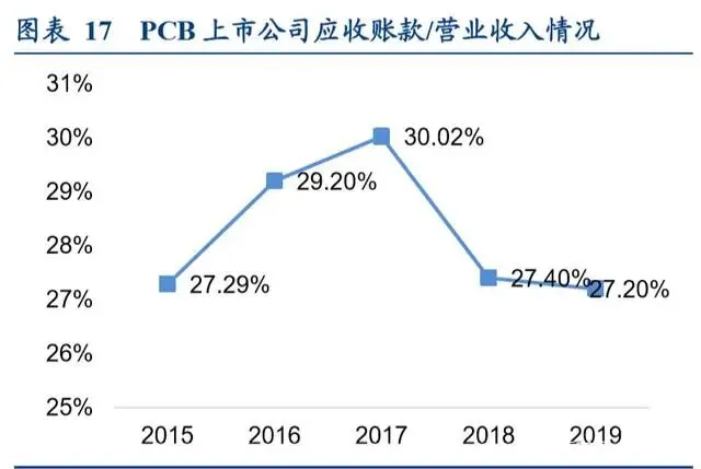 PCB 板块盈利质量稳步提升,2019 年应收账款/营业收入比例与净现比均呈下降趋势。PCB 板块应收账款/营业收入 比例与净现比均呈下降趋势,2019 年应收账款/营业收入比例同比减少 0.20%,净利润/经营性活动现金流量净额减少 0.01。龙头企业中东山精密盈利质量提升最快,2019 年应收账款/营业收入比例同比减少 7.95%,净 现比同比减少 0.31。