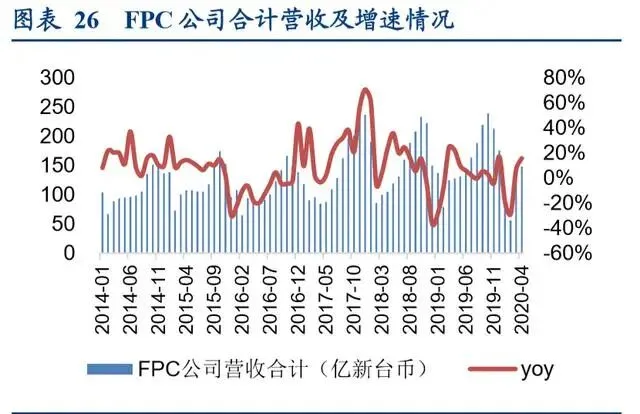 中国台湾 PCB 上游原料方面,2020 年 4 月上游原料公司共实现营业收入 324.62 亿新台币,同比-11.11%,其中硬板 CCL 厂商实现营收 314.91 亿新台币,同比-11.47%;FCCL 厂商实现营收 9.71 亿新台币,同比+2.63%。硬板 CCL 厂 商中,联茂和台耀受益于 5G 基站高频高速材料需求,营收保持高增长,联茂 4 月实现营收 24.30 亿新台币,同比 +23.41%;台耀 4 月实现营收 18.74 亿新台币,同比+24.31%。——维文信 《印制电路世界》杂志