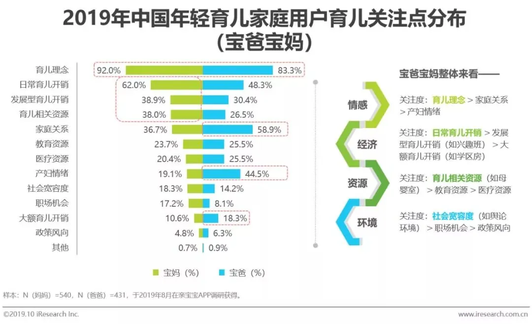 育儿理念是宝妈宝爸关注的焦点,其中,宝妈更关注育儿开销