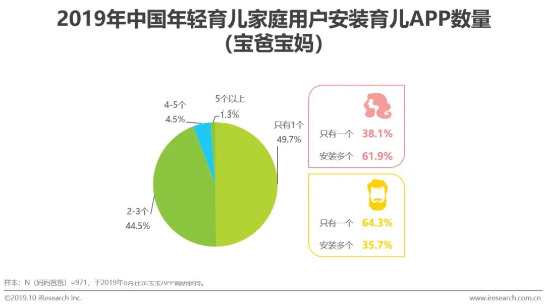 只用一个APP的用户近半数,宝妈人群更偏好用多个APP