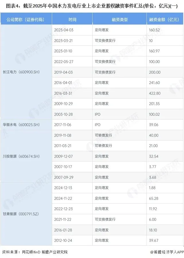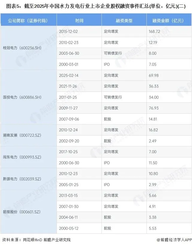2、中国水力发电行业上市企业股权融资以定向增发为主