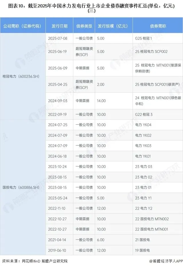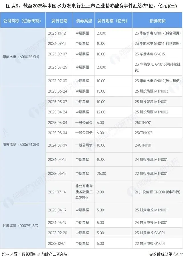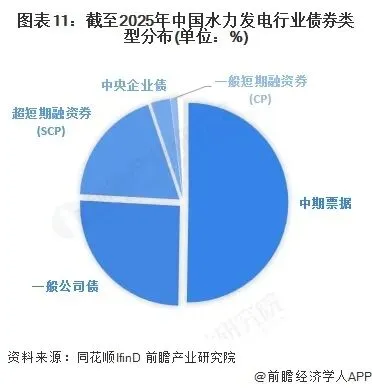 3、中国水力发电行业上市企业债券融资以中期票据和公司债为主
