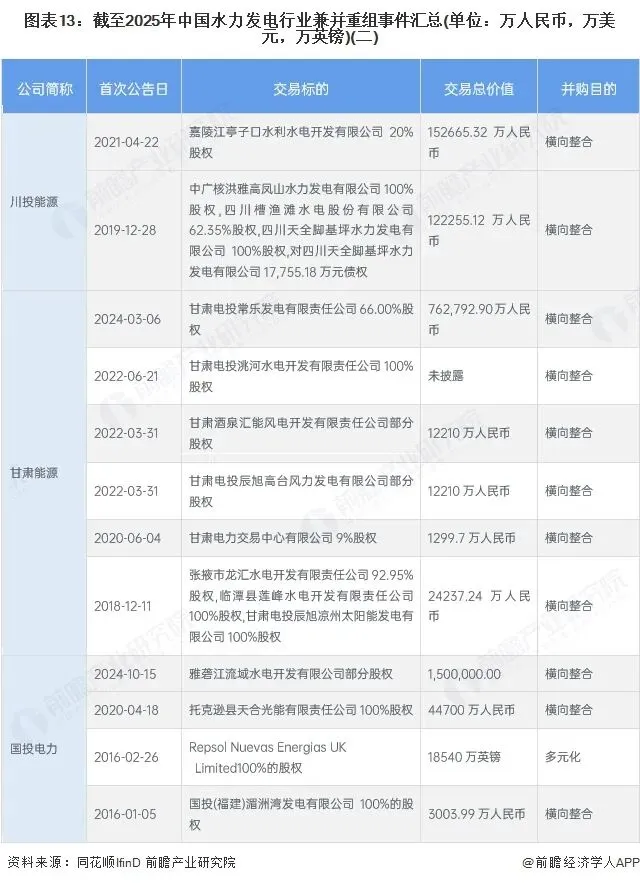 5、中国水力发电行业投融资及兼并重组总结