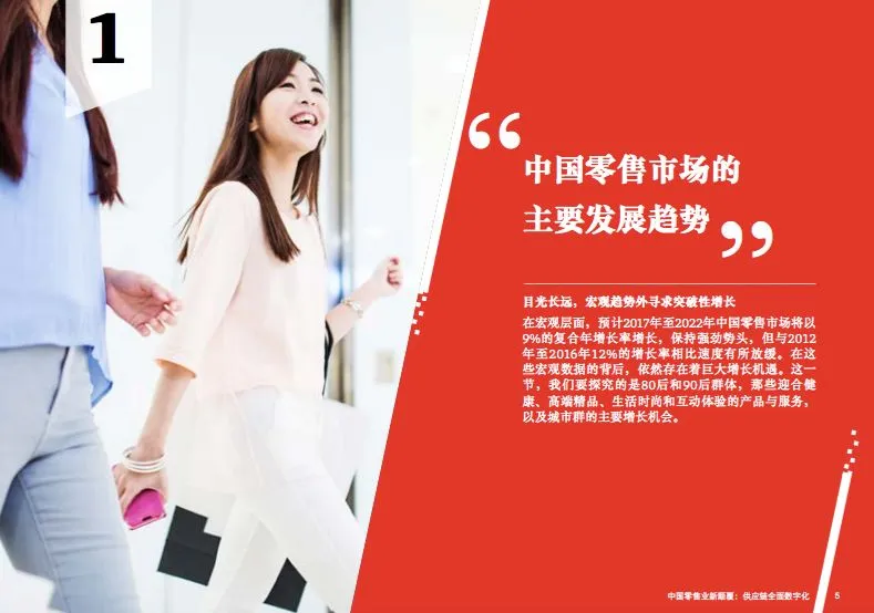 在宏观层面,预计2017年至2022年中国零售市场将以 9%的复合年增长率增长,保持强劲势头,但与2012 年至2016年12%的增长率相比速度有所放缓。在这些宏观数据的背后,依然存在着巨大增长机遇。