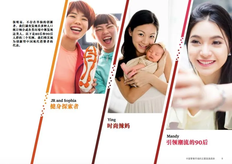 在这里要探究的是80后和90后群体,那些迎合健康、高端精品、生活时尚和互动体验的产品与服务,以及城市群的主要增长机会。