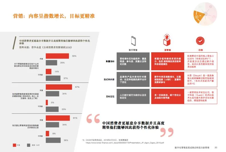 《全球消费者洞察调研2018》中国报告主要介绍了从数字化零售到新零售的变革。对于已经在中国运营的企业,该报告阐述了在中国这个日新月异的消费环境中开展业务的方式,对于寻求商业灵感的企业而言,报告勾画了中国引领全球零售业创新的未来蓝图。