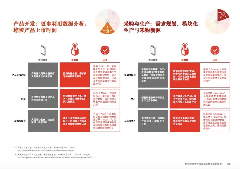新零售不仅改变着商家与消费者的互动,更改变着整个价值链。零售商正在构建更智能、更灵活以及多功能的供应链,能实现线上和线下渠道库存共享。运用大数据使得产品开发更贴近客户需求,而且还可以缩短上市时间。 货源可追溯性,尤其是通过区块链进行追溯,日渐成为获取消费者更高信任度的重要方式。