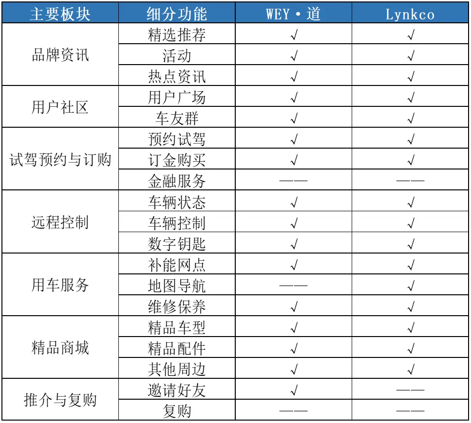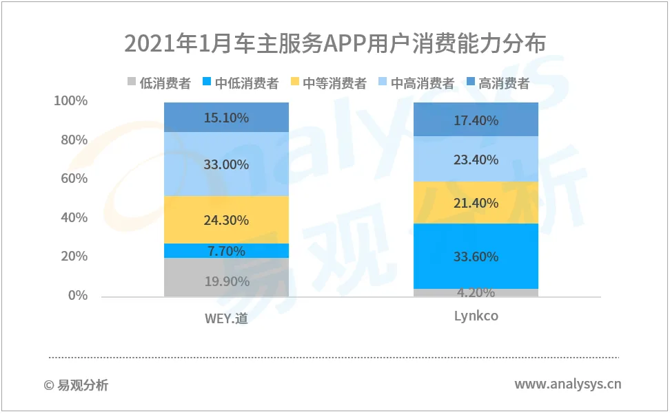 易观分析对收录的车主服务APP内的功能进行分析对比发现, 主要的功能可以归纳为两大类即买车服务和用车服务,七个板块,分别为品牌资讯、用户社区、远程控制、试驾预约与订购、用车服务、精品商城和推介与复购。七类功能中用车服务和远程控制是目前车主服务APP的核心功能,其中用车服务功能覆盖占比最高,达到97.9%,而远程控制功能覆盖占比也达到了78.7%。分功能看,买车环节主要是用户通过品牌资讯和用户社区的信息获取是否要购买的一些决策信息,比如推荐和活动释放的品牌价值和用户反馈展现的产品实力,如果收到反馈的信息与自己的价值观或者消费观所匹配,那么就可能会有接下来的线上的试驾预约与订购环节。当然用户广场的一些反馈也可以被厂商所利用,主要是这些反馈会对其产品的下一次迭代升级及品牌的进一步发展有非常大的促进价值。而用车环节主要是目前比较受用户欢迎的远程控制车辆比如远程控制车窗、车门、空调等功能以及用户在实际用车过程中的线上地图导航和维修保养等服务,还有就是给予用户更多的消费价值选择比如以汽车以及其衍生品主导的线上精品商城。所以用车环节是能够较大影响用户满意度的,进而也影响到用户的推荐与复购。由此可见,部分功能的覆盖是不足以满足用户全量的数字化体验的,当然也不能形成完整的数字营销闭环。易观分析通过1月车主服务行业APP用户的月度活跃数量与2020年其品牌的销量的比值得出车企用户数字化渗透指数。该指数越高代表用户的数字化用车渗透率越高。易观分析发现中国新能源厂商的用户数字化渗透指数更高,也同样说明用户营销和运营的数字化水平更高。一方面新能源厂商多为新进入厂商,对数字化应用研发和运营能力搭建的起步较快也相对灵活;另一方面,针对车主新能源汽车的充电和换电痛点,新能源厂商将与此相关的功能整合植入到车主应用功能的功能中,在为用户提供便捷服务的同时,也获得了较高的用户运营数字化使用率。相应的结合公开数据,新能源厂商基于车联网平台自动驾驶安装包的收入水平也相对更高。在2021年1月车主服务行业造车新势力TOP5中,蔚来以8.67万用户排名第一,特斯拉以4.19万用户荣获第二,小鹏汽车位列第三。造车新势力车主基数相对较小,但其渗透率领先全网。新势力厂商在用户移动端布局贯穿车主服务全生命周期的服务内容,如车主营销、购买到用车服务、车主社群、增值服务等。另外,如上文分析可知,新能源汽车多通过车主服务应用为车主提供充电和换电服务,这也成为新势力品牌车主活跃度相对较高的原因之一。在2021年1月车主服务行业合资品牌TOP10中,日产智联以62.41万用户排名第一,丰云行以23.08万用户荣获第二,iBuick位列第三。除车主基数庞大这一关键要素外,荣登榜首的日产智联给予每位车主十年免费基础流量和WIFI热点服务。这是目前同级别品牌车辆销售和运营服务中独有的优势,大大提升了日产智联用户APP的使用率。另外在智能网联领域,日产智联拥有ProPILOT超智驾技术,可以通过车主应用帮助用户实现双手脱离方向盘驾驶。这些吸引车主的应用亮点,也在一定程度上提升了应用的活跃度,帮助日产智联在合资品牌车主服务应用的活跃度中脱颖而出。在2021年1月车主服务行业自主品牌TOP10中,菱菱邦以84.6万用户排名第一,比亚迪云服务以38.54万用户荣获第二,inCall位列第三。五菱、比亚迪和哈弗虽然在自主品牌领域车主APP上线较晚,但用户活跃规模具有后发优势,一方面得益于三个品牌旗下的优秀车型均为同品类车型(MPV、新能源、SUV)的销售冠军,用户活跃的基数相对庞大。另一方面,三个品牌年轻化的市场定位,也决定了其用户对数字化用车媒介的接受度显著高于其他品牌车主。另外,自主品牌车主服务APP的功能相对完善,整体处于中国车主服务领域的领先者行列。而长安在本身第三次创业后,在去年也出现了逆境中翻盘的效果,聚焦SUV的发展战略让长安在2021年继续崭露头角。近年来国产高端汽车市场成为重要的市场竞争焦点,相对有实力的自主品牌都相继推出了新高端品牌。其中吉利汽车旗下的领克和长城旗下的魏派还推出了独立的用户车主应用Lynkco和WEY·道。与领克2020年全年销量17.5万辆、魏派2020年全年销售7.85万辆正相关,两家车主2021年1月用户活跃规模分别为10.52万和6.17万。从应用功能构成角度,WEY·道和Lynkco两款APP基本覆盖了车主服务的全生命周期的流程,尤其是在品牌资讯、用户社区、远程控制和精品商城四部分中两家均布局了主要功能。而主要差异体现在推荐购买环节,WEY·道拥有邀请好友购买的功能,而Lynkco则不具备这项功能。另外在购车环节中的一些附加服务如金融服务均未涉及。易观千帆数据显示,互为竞品的两个品牌虽然同样定位于中国自主品牌的高端市场,但由于渠道和市场策略的多种不同,其用户画像则存在较大差异。从年龄属性来看,领克用户在30岁以下占比较高,说明其更受年轻用户的喜爱。而魏派的用户年龄层的分布是更加均衡,说明其车型的普遍接受度要高一些。这里补充分析一下其用户年龄有所差异的一些看法,从品牌定位来看,魏派的定位是中国豪华品牌领导者,其主打的安全、舒适、豪华等特性也比较贴近高年龄消费者的喜好。领克的定位是全球新时代高端品牌既有