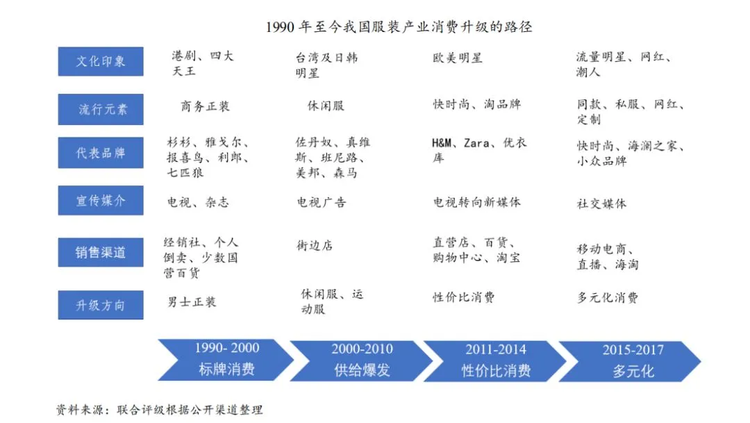 现在消费者更趋向追求个性化品牌和高性价比产品,消费者对于服装的需求观念的转变也促进了服装行业的变革。