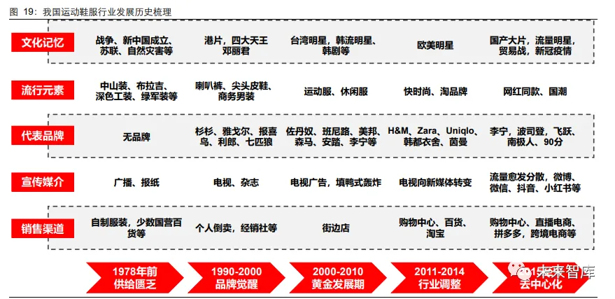 服装作为典型可选消费品,其发展会受到社会收入水平、文化背景、宣传媒介、销售渠 道等多个因素影响。本章中,我们将对 20 世纪以来的中国鞋服行业发展进行简要复盘, 以期更好的理解当前中国鞋服行业竞争格局的形成和本次国货崛起的历史背景。
