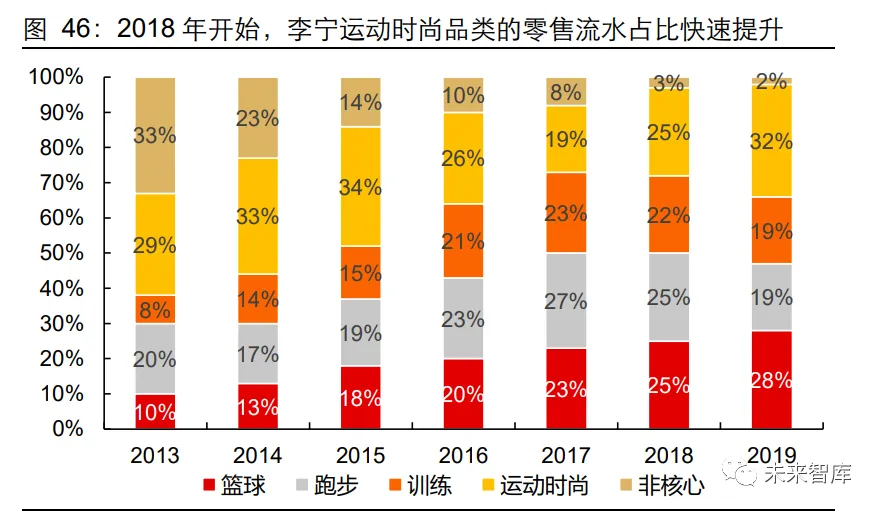 ➢ 回归专业运动定位,聚焦中国市场。产品回归专业性定位,强化“让专业更专业, 让生活更搭配”的理念,回归“一切皆有可能”的口号,彰显李宁源自运动拼搏精 神的品牌 DNA。专注篮球、跑步、羽毛球、训练及运动生活五大核心品类,摈弃 同质化的休闲服装品类和多元化品类。优化赞助资源,重点赞助中国国家队,并巩 固对主要体育项目赞助的领导地位,以及加强对中国最受欢迎体育联赛中国男子 篮球职业联赛及顶级 NBA 球员德维恩•韦德合作的投入。