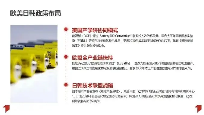 政策层面,中国已将固态电池列为国家战略,工信部等多部门密集出台专项支持文件,明确2027年实现产业化突破,并设立60亿研发补贴与50亿元专项贷款。地方财政对中试线建设最高补贴30%,长三角与珠三角正形成两大产业集群。与此同时,欧美日韩也全面加码:美国通过“Battery500联盟”投入巨资研发,欧盟斥资32亿欧元打造本土电池产业链,日本丰田计划2028年实现全固态电池量产,全球标准体系与专利壁垒争夺日趋白热化。