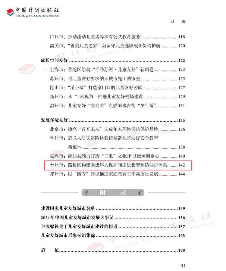 日前,国家发展改革委社会发展司会同国务院妇儿工委办公室组织编写了《中国儿童友好城市发展报告(2025)》,台州市路桥区构建未成年人保护和违法犯罪预防共护体系入选。该项经验揭秘了路桥如何创新“翼·同护”治理模式,用司法的尺度温度为迷途者点亮希望之光,为未成年人营造出更加良好的成长环境。