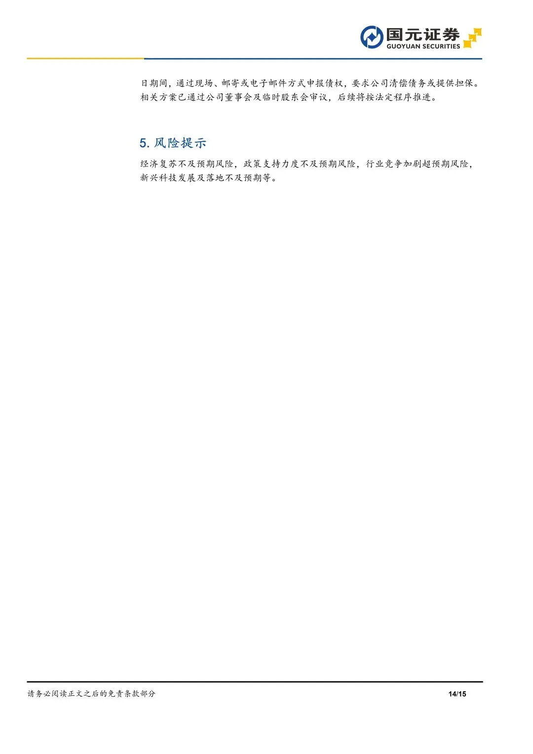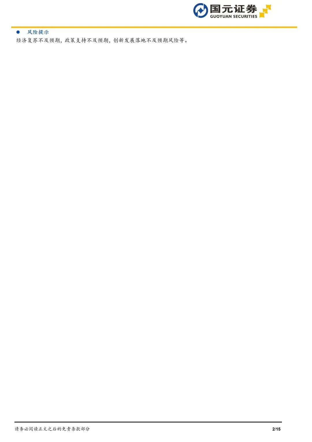 经济复苏不及预期,政策支持不及预期,创新发展落地不及预期风险等。