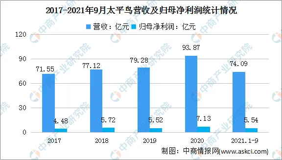 2020年,太平鸟推进运营管理体系变革,公司经营业绩逆势增长,经营质量逐渐改善,实现营收93.87亿元,同比增长18.41%;实现归母净利润7.13亿元,同比增长29.24%。2021年前三季度,太平鸟实现营收74.09亿元,同比增长34.20%;实现归母净利润5.54亿元,同比增长78.54%。