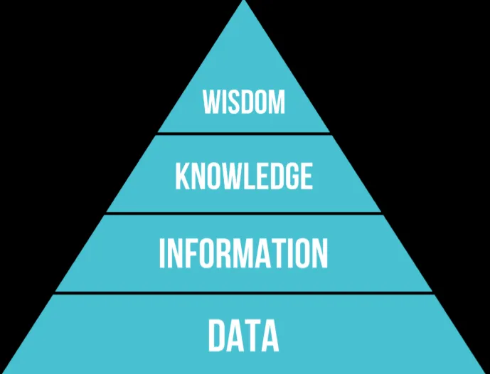 从原始数据中提取出信息,并通过总结得到知识,逐渐积累成为智慧。